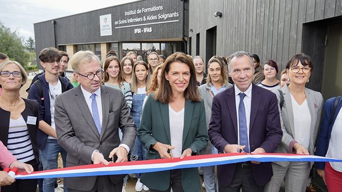 Le 21 septembre dernier, Christelle Morançais, présidente de la Région des Pays de la Loire, a inauguré les nouveaux locaux de l’institut de formation d’aides-soignants et d’infirmiers du centre hospitalier Châteaubriant - Nozay – Pouancé (44), en présence de Alain Hunault, maire de Châteaubriant et président du conseil de surveillance. Ces nouveaux locaux, qui accueillent les élèves depuis la rentrée de septembre, ont été financés par la Région à hauteur de 3,48 M€, soit 87 % du montant des travaux. « Ces nouveaux bâtiments, plus modernes et plus spacieux, permettent d’accueillir les élèves dans les meilleures conditions et d’augmenter le nombre d’étudiants », a indiqué Christelle Morançais. « C’est aussi cela l’ambition de la Région : offrir aux étudiants des lieux de d’apprentissage de la connaissance de qualité et modernes. »
