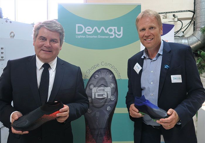 Le produit, unique, s’inscrit dans une stratégie de développement durable pour Demgy Group, qui emploie près de 700 personnes dans le monde et, spécialiste de l’injection et des composites thermoplastiques, produit généralement des pièces destinées à l’automobile, à l’aéronautique, ou à la bagagerie de luxe. « Pour le plasturgiste, cette paire de chaussures de foot est donc une piste de diversification en puissance. Et un exemple de produit écoconçu », complète Pierre-Jean Leduc, le PDG du groupe. « Nous investissons aujourd’hui pour les besoins produits et les exigences de demain, c’est une démarche de développement durable ».